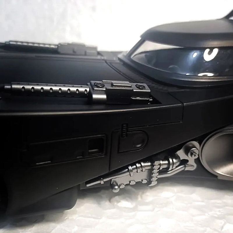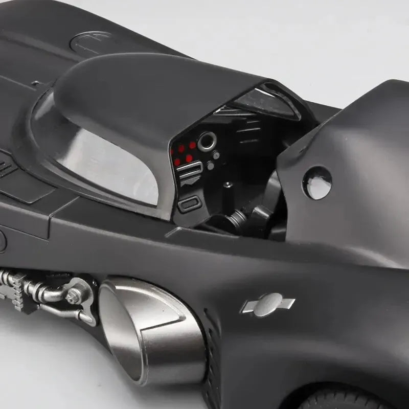 Reviva a atmosfera sombria de Gotham com esta impressionante réplica em escala 1:18 do Batmóvel Clássico de 1989. Mais do que uma peça decorativa, é uma experiência interativa: o cockpit abre e fecha, os compartimentos frontais de armas podem ser acionados, as rodas dianteiras esterçam junto com o volante e a tampa traseira do motor revela a turbina em detalhes.
