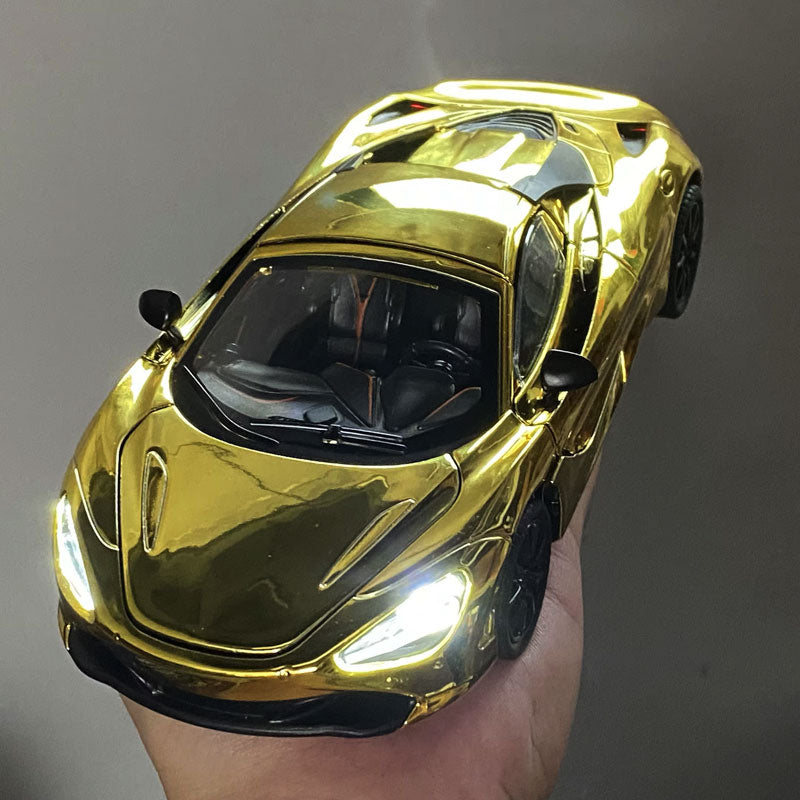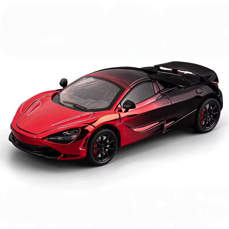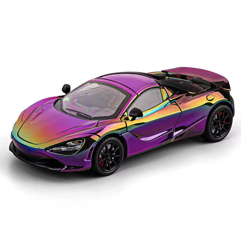 A lendária McLaren 720S chega em uma versão 1:24 diecast ainda mais exclusiva, disponível em três acabamentos impactantes: Vermelho Cromado, Roxo Iridescente e Dourado Espelhado.