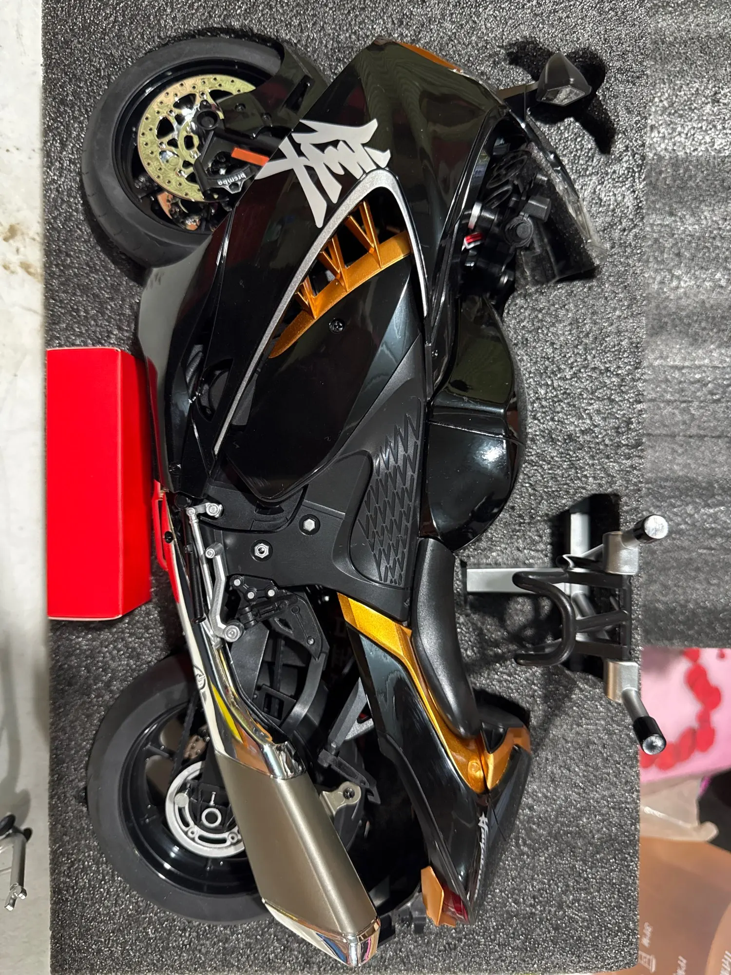 Esta Suzuki Hayabusa GSX-1300R em escala 1:6 não é apenas uma réplica impressionante: é uma miniatura dinâmica, equipada com tecnologia que simula a experiência real de uma superbike de alta performance.